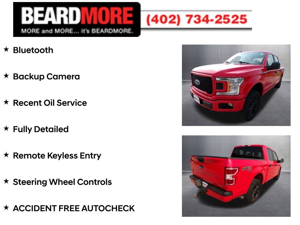 Race Red 2020 Ford F-150 XL Certified. Bluetooth, Backup Camera, Recent Oil Service, Fully Detailed, Remote Keyless Entry, Steering Wheel Controls, ACCIDENT FREE AUTOCHECK, 20" Machined-Aluminum Wheels, 4.2" Productivity Screen in Instrument Cluster, Body-Color Front & Rear Bumpers, Body-Color Surround w/Black Mesh Insert Grille, Box Side Decals, Cruise Control, Driver/Passenger Seat Back Pocket, Equipment Group 101A Mid, Fog Lamps, FordPass Connect (4G), GVWR: 6,500 lbs Payload Package, Manual Driver/Passenger Lumbar, Rear Window Defroster, Rear Window Fixed Privacy Glass, STX Appearance Package, SYNC, SYNC 3, Unique Sport Cloth 40/20/40 Front-Seats, Wheels: 17" Silver Painted Aluminum, XL Power Equipment Group, XL Sport Appearance Package. .....MORE and MORE... it's BEARDMORE.
