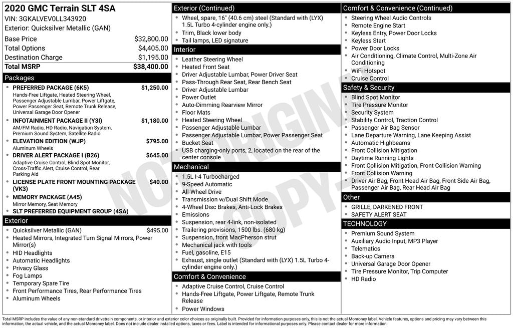 4D Sport Utility 2020 GMC Terrain SLT AWD 1.5L DOHC 9-Speed Automatic