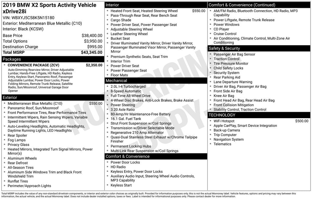 4D Sport Utility 2019 BMW X2 xDrive28i AWD 2.0L 4-Cylinder DOHC 16V TwinPower Turbo 8-Speed Automatic