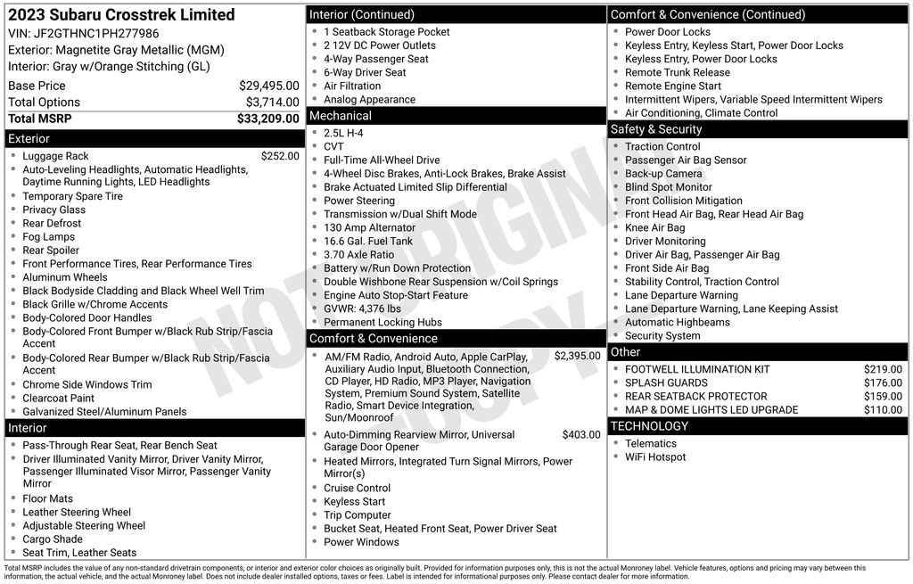 Magnetite Gray Metallic 2023 Subaru Crosstrek Limited Certified. Odometer is 2656 miles below market average! Leather Seats, Sunroof/Moonroof, Navigation System, Bluetooth, Backup Camera, Recent Oil Service, Fully Detailed, Remote Keyless Entry, Heated Seats, Premium Audio, Steering Wheel Controls. .....MORE and MORE... it's BEARDMORE.