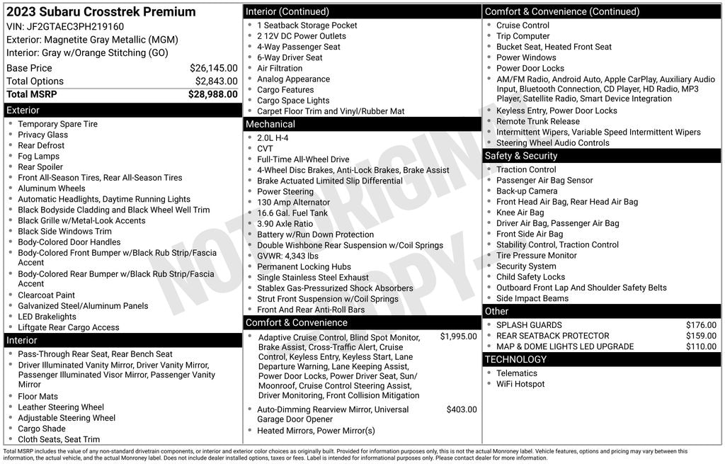 Magnetite Gray Metallic 2023 Subaru Crosstrek Premium Odometer is 17767 miles below market average! Sunroof/Moonroof, Bluetooth, Backup Camera, Recent Oil Service, Fully Detailed, Remote Keyless Entry, Heated Seats, Steering Wheel Controls. .....MORE and MORE... it's BEARDMORE.