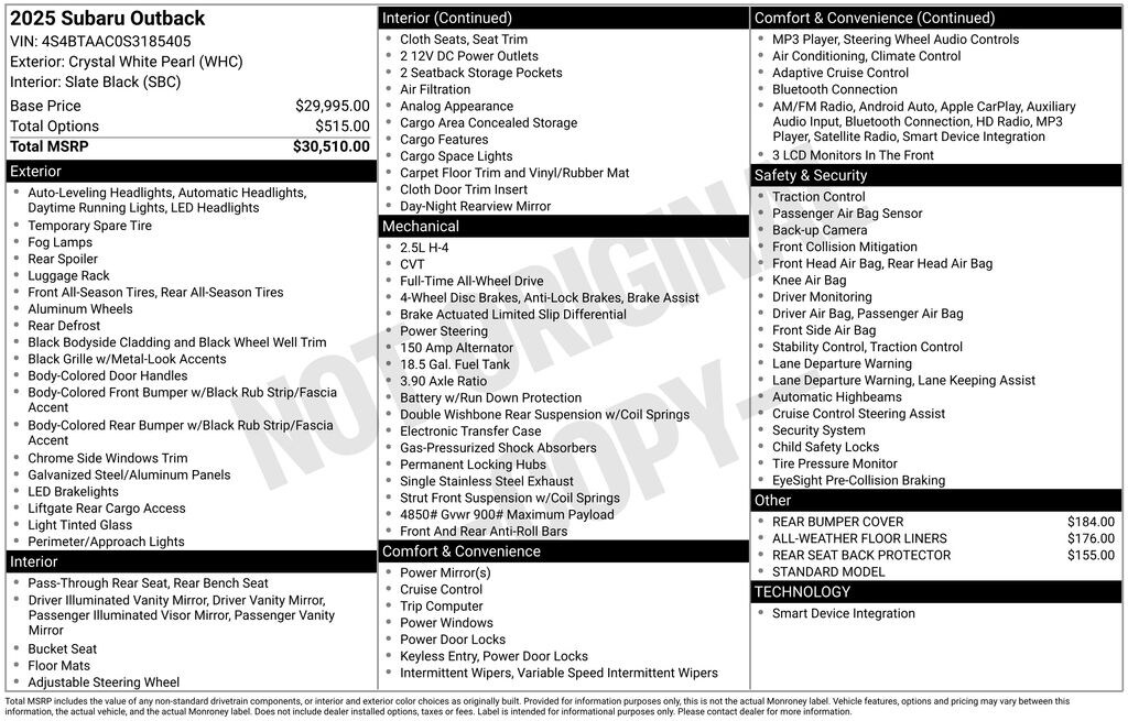 Crystal White Pearl 2025 Subaru Outback 2.5i Recent Arrival! Recent Oil Service, Fully Detailed. .....MORE and MORE... it's BEARDMORE.